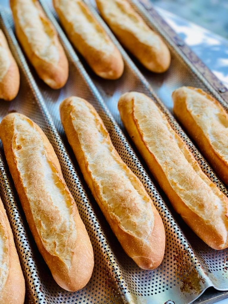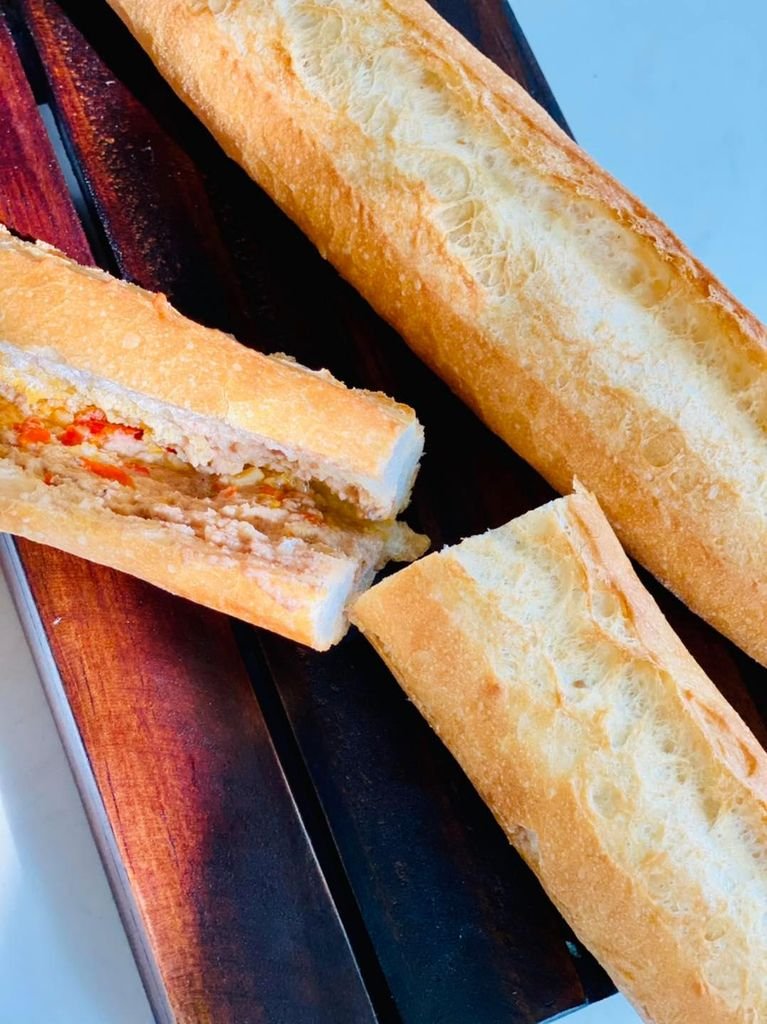 Bánh mì Que, bột bánh ngon, vỏ bánh giòn được phết chút Pate và Sốt bơ thơm thơm do chính bổn Tiệm làm. Quý khách chỉ việc rã đông nhanh và làm nóng lại bằng nồi chiên không dầu hoặc lò nướng sẽ có ngay một món ăn cực kỳ hấp dẫn.