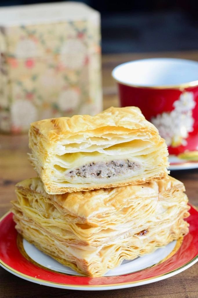 • Vỏ bánh: Bột mì trắng, muối, đường, bơ động vật, nước.