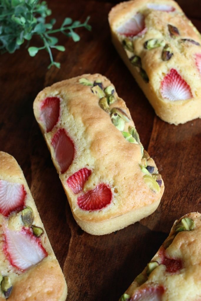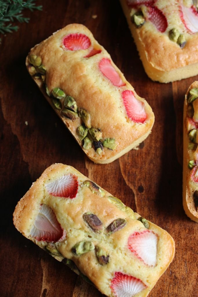Thành phần: Bột mì trắng, trứng gà, bột hạnh nhân, đường, muối, bơ động vật, bột nở, dâu tươi