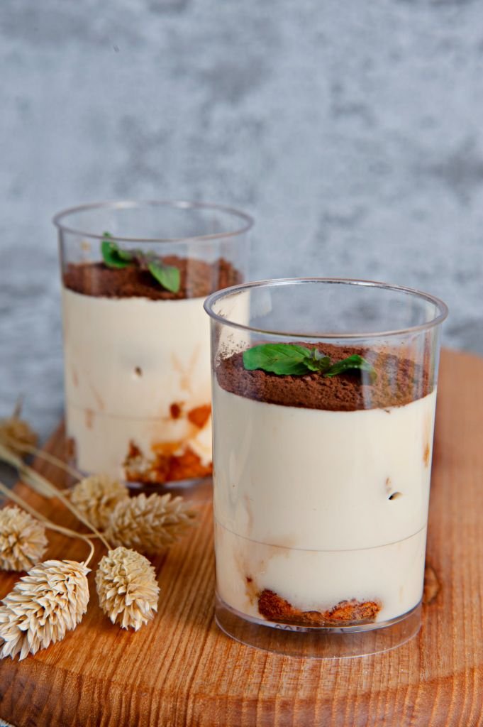 - Kem mousse: kem tươi, phô mai mascarpone, đường, trứng gà, rượu, gelatine